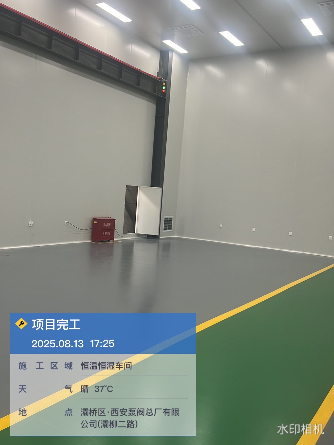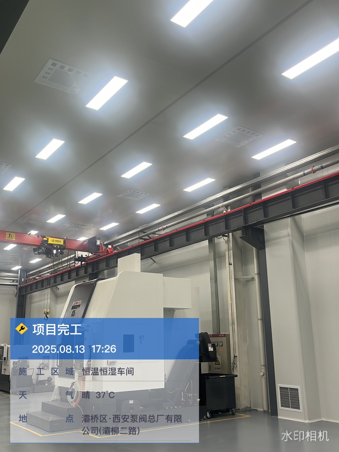 西安泵阀总厂500平米恒温恒湿车间 1、建设位置及面积 恒温恒湿房布局位置:军工事业部北跨(靠窗户)西门至北侧,尺寸:54000mm×9000mm×6000mm,面积合计:486m²。 2、温湿度要求 温度要求20~25±2℃。湿度要求在50-65%之间,但不大于70%。 本文地址: http://xahgxs.com//a/khal/245.html